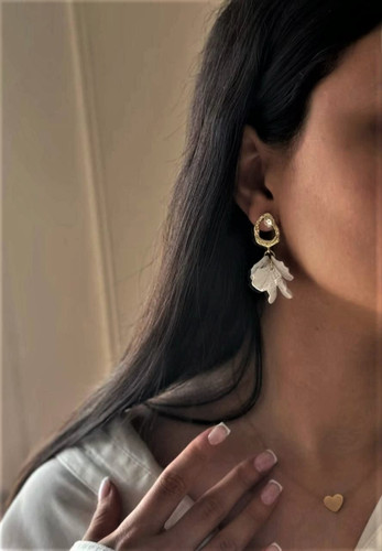 گوشواره زنانه گل کشیده مرواریدی مینیمال دخترانه رنگ طلایی