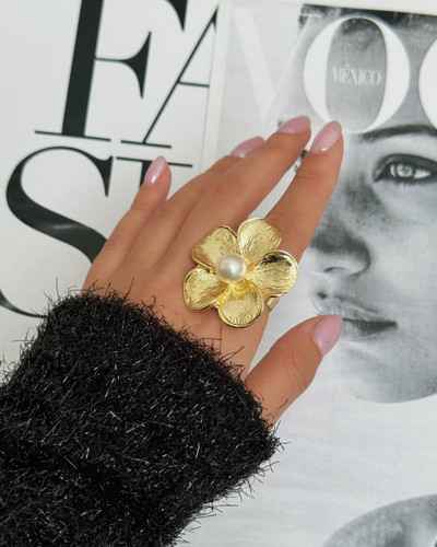 انگشتر زنانه گل کشیده مرواریدی مینیمال دخترانه رنگ طلایی