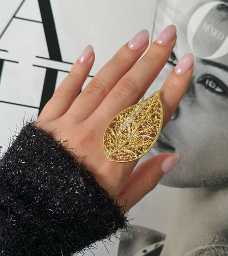 انگشتر زنانه طرح برگ طلایی مینیمال دخترانه