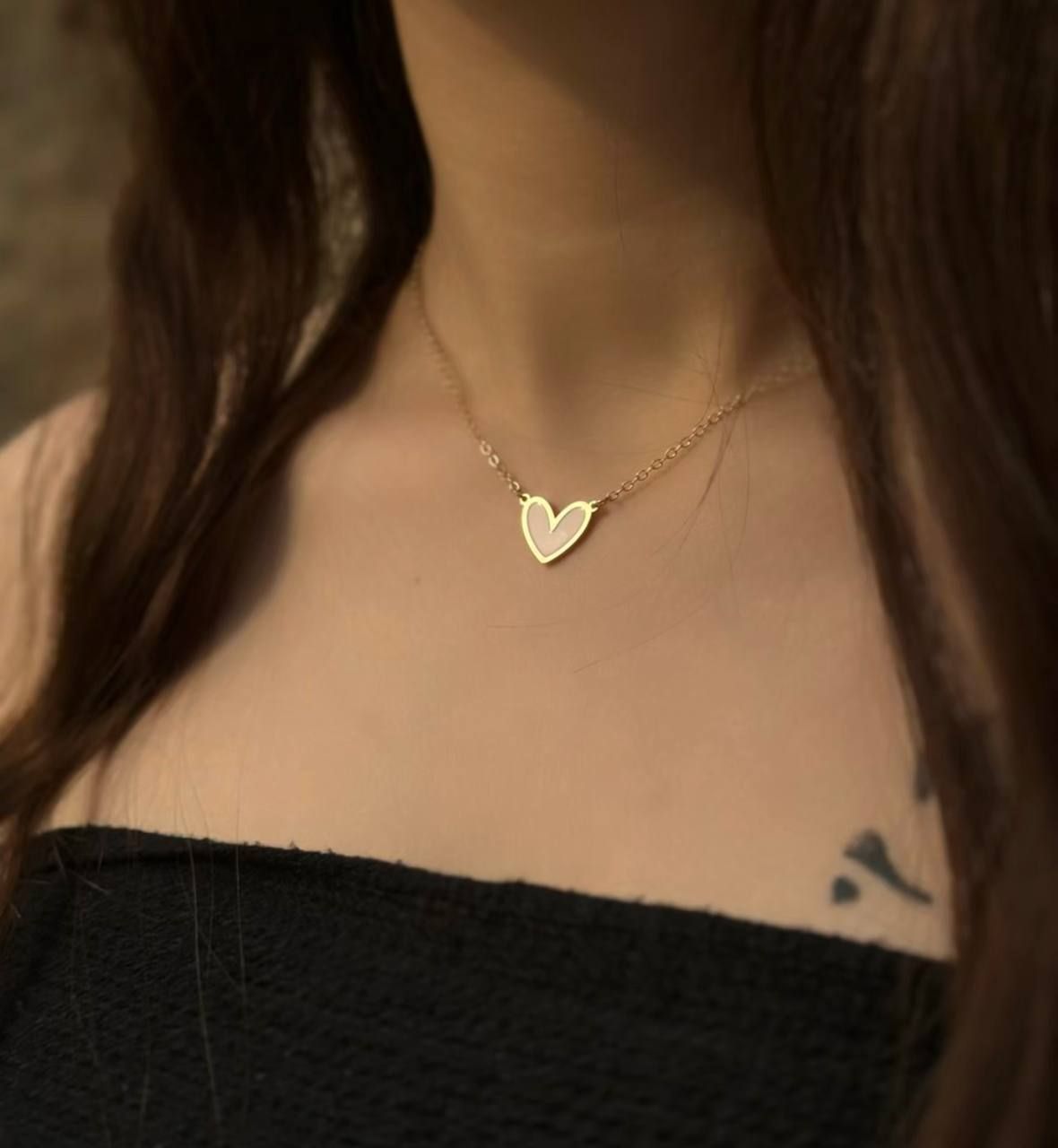 گردنبند زنانه قلب صدفی مینیمال دخترانه رنگ طلایی