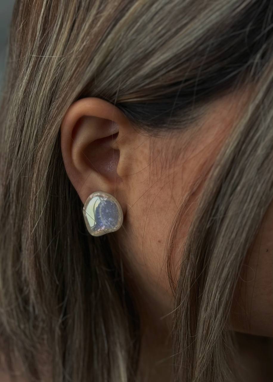 گوشواره زنانه صدفی رگه دار مینیمال دخترانه
