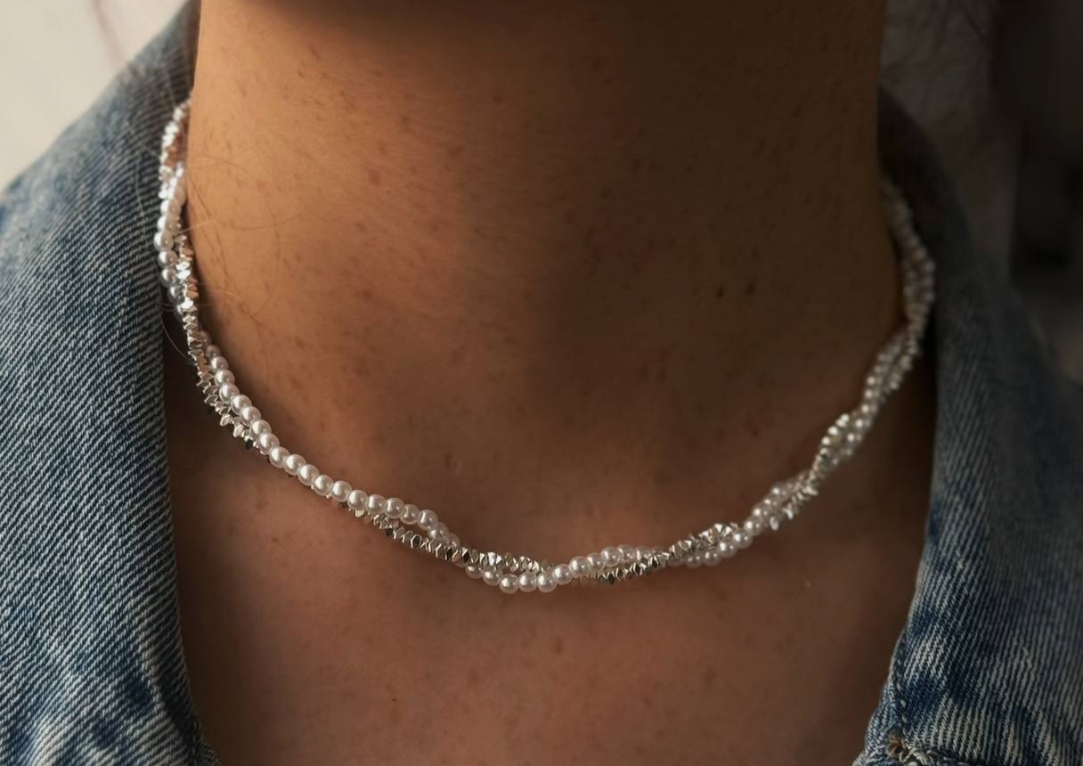 گردنبند زنانه دوردیفه تراش و مرواریدی مینیمال دخترانه
