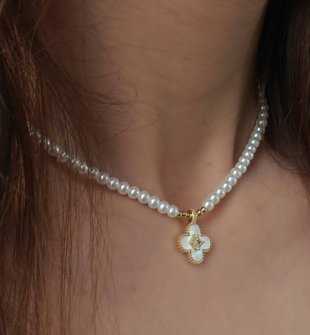 گردنبند زنانه مرواریدی پلاک ونکلیف مینیمال دخترانه