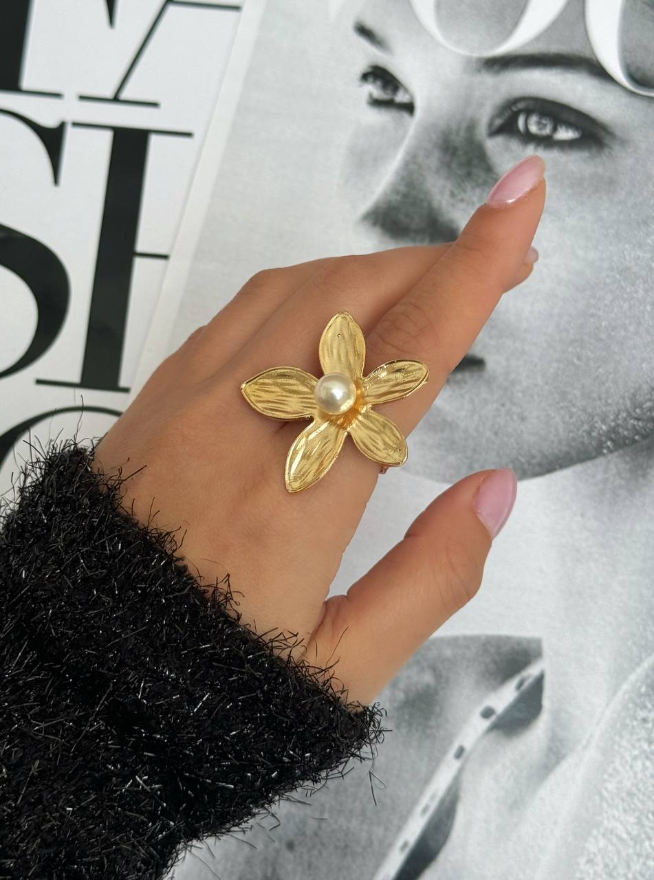 انگشتر زنانه گل کشیده مرواریدی مینیمال دخترانه رنگ طلایی