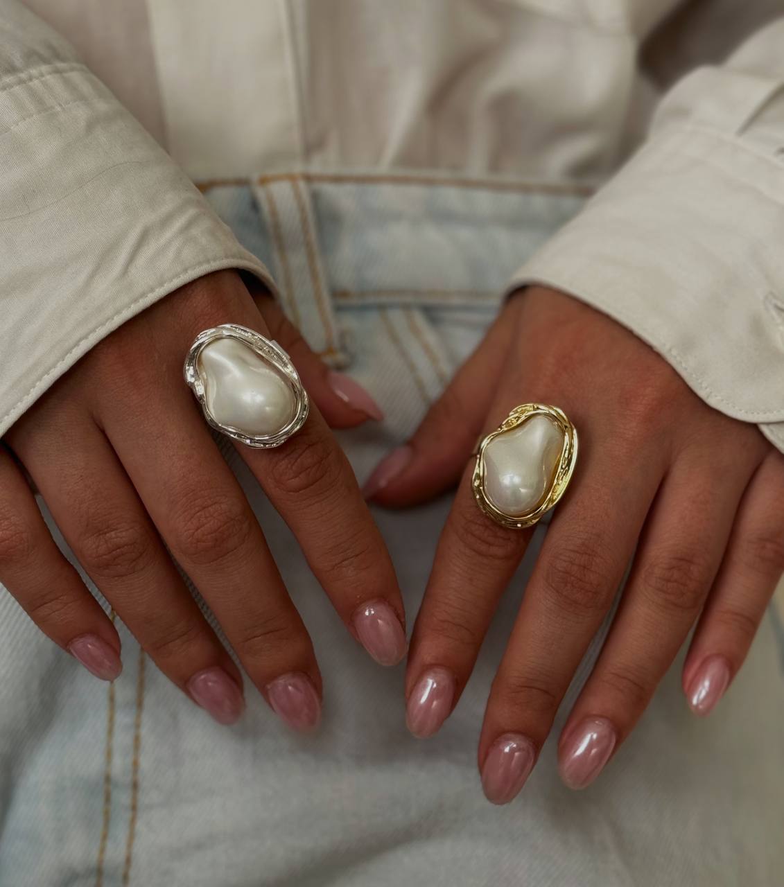 انگشتر زنانه مروارید دفرمه مینیمال دخترانه