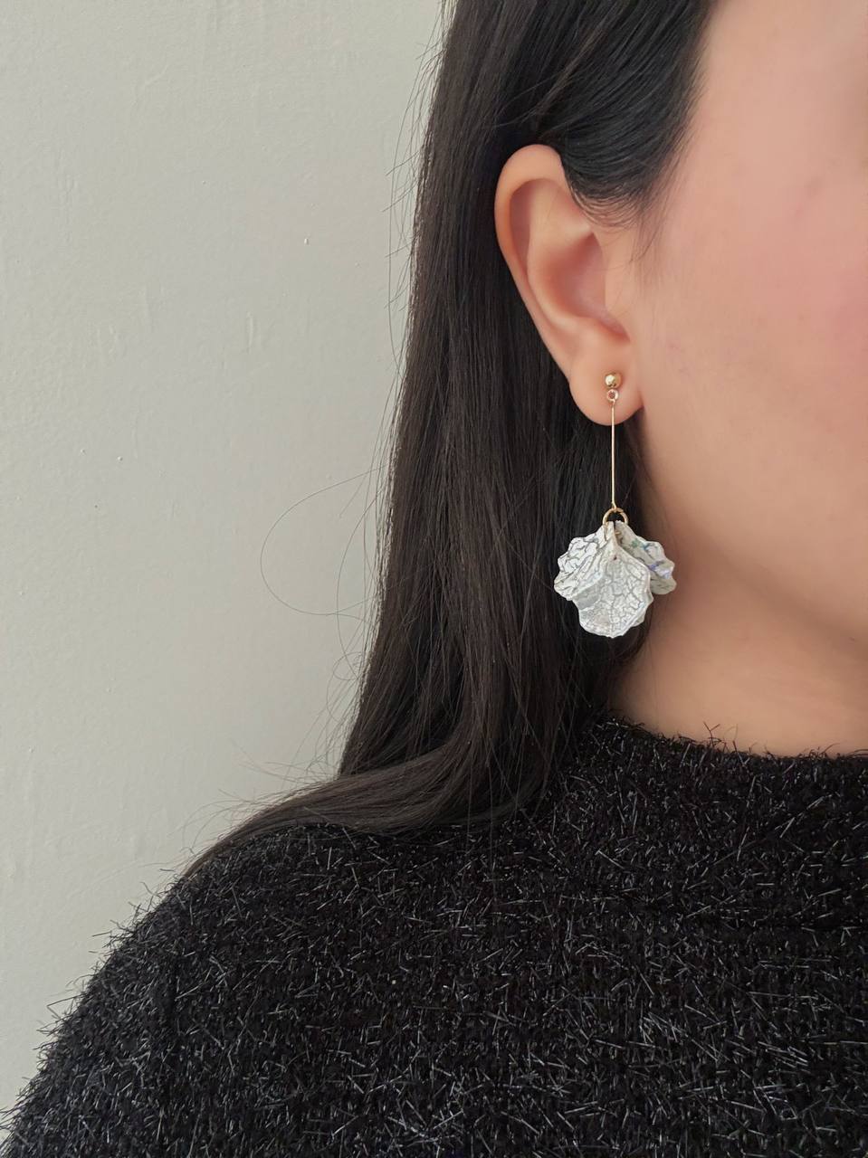 گوشواره زنانه گل کشیده مرواریدی مینیمال دخترانه رنگ نقره ای