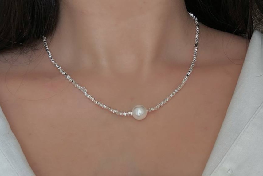 گردنبند زنانه مدل تراش و مروارید مینیمال دخترانه
