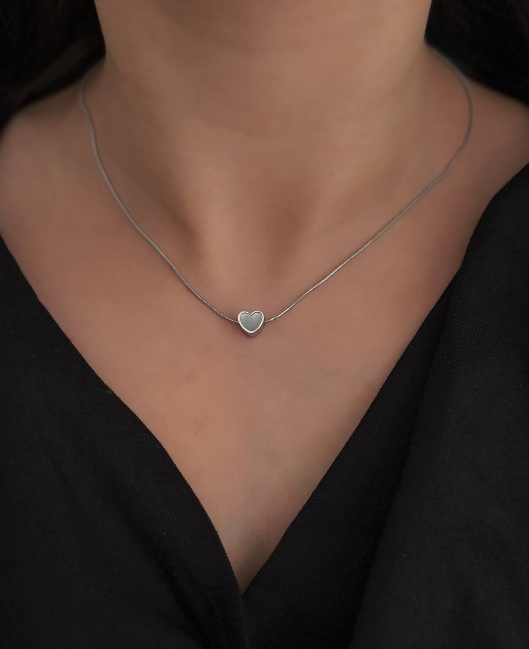 گردنبند زنانه قلب استیل مینیمال دخترانه رنگ نقره ای