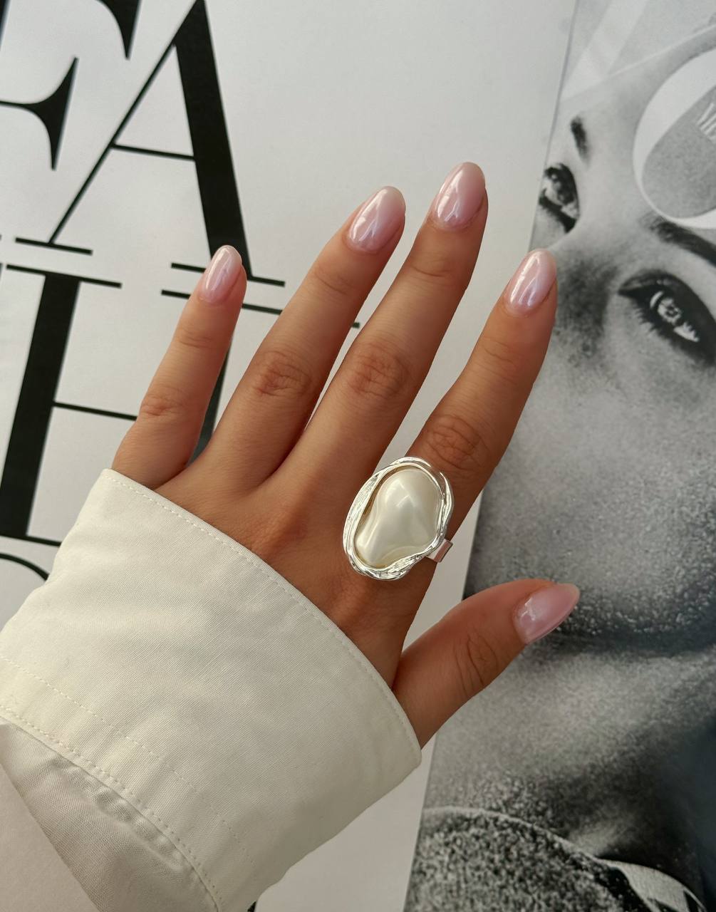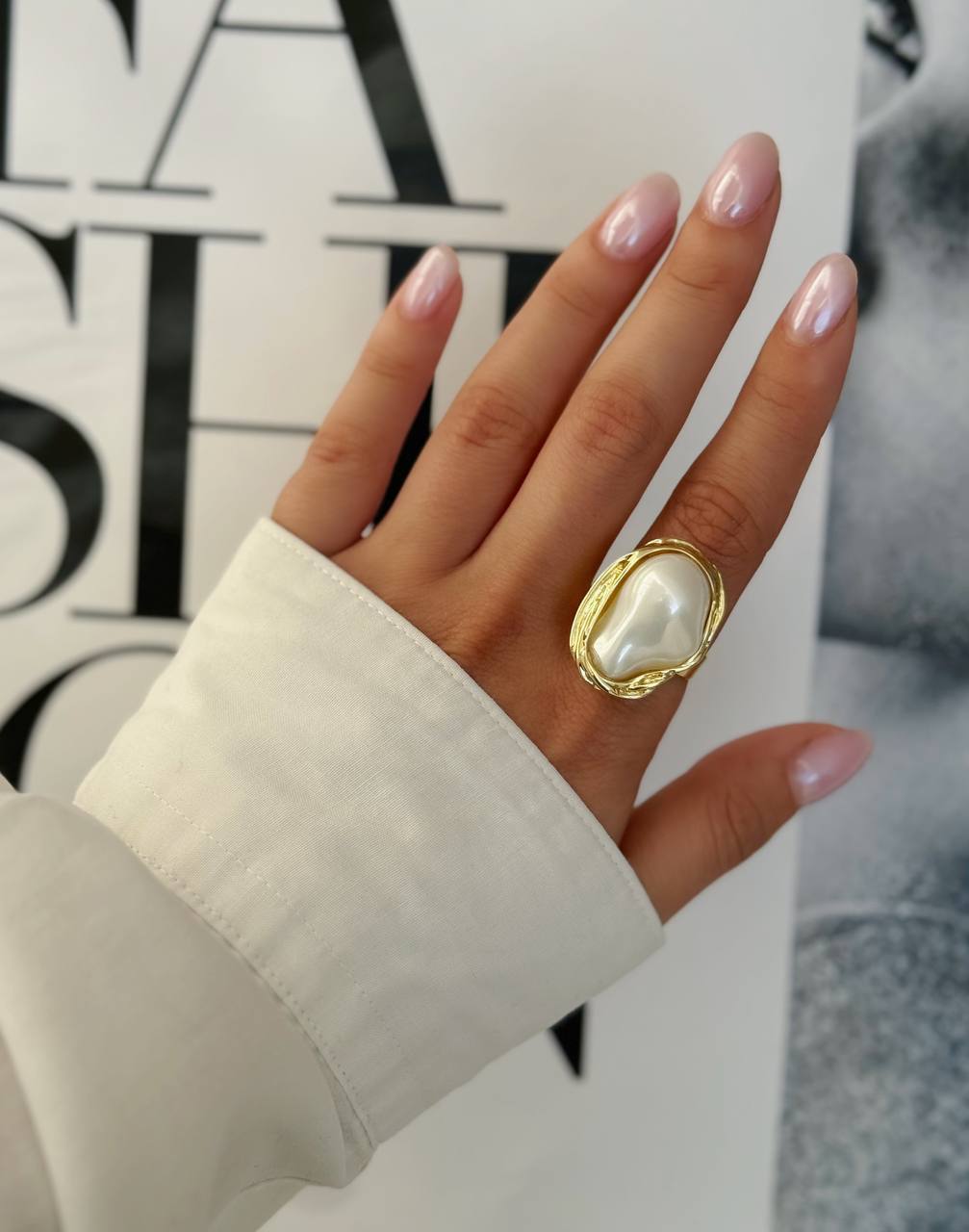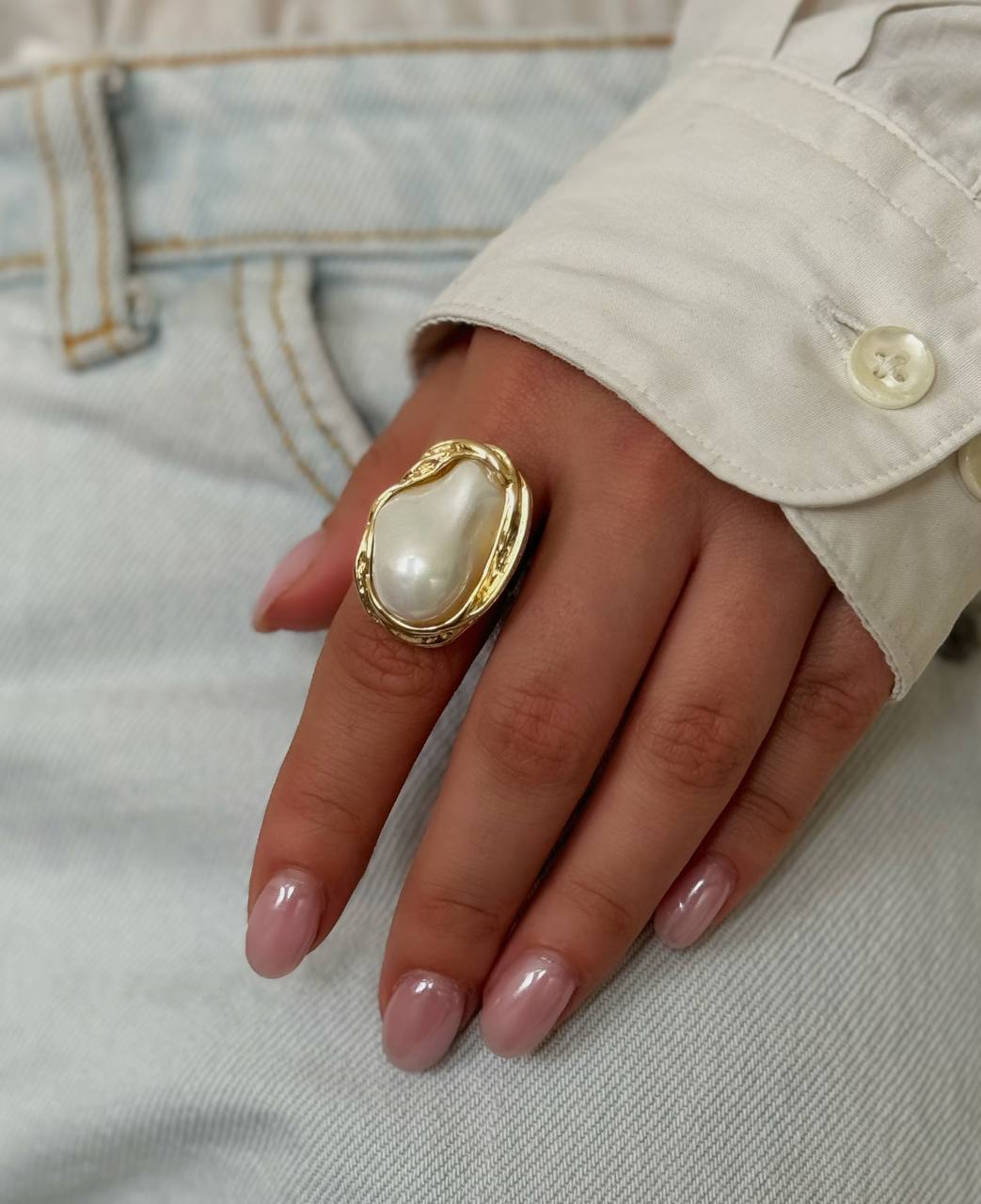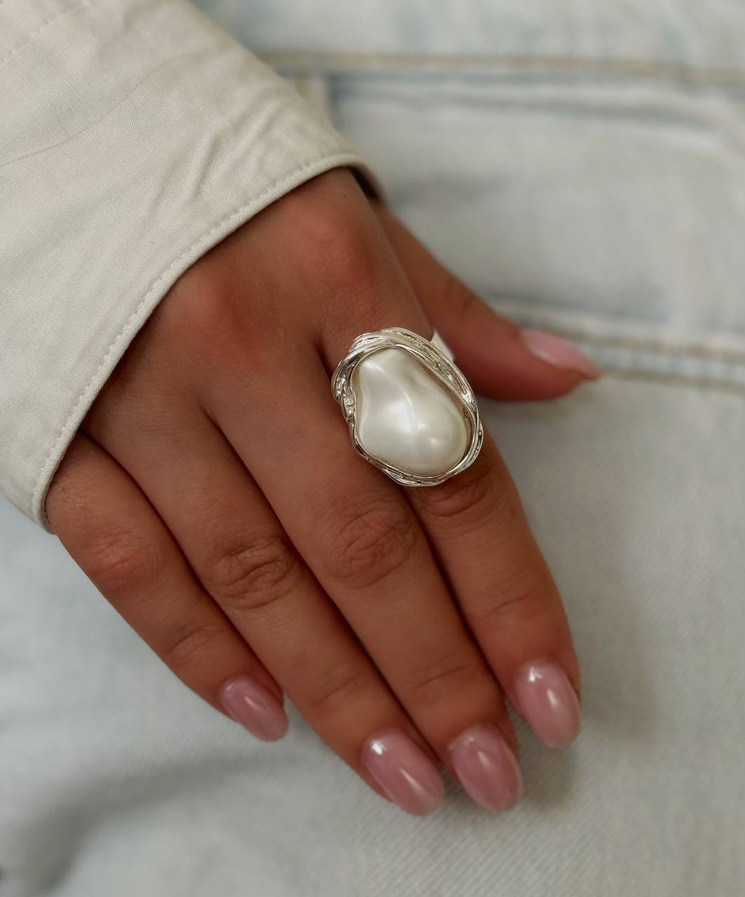انگشتر زنانه مروارید باروک دفرمه مینیمال با رنگ ثابت و ضد حساسیت
