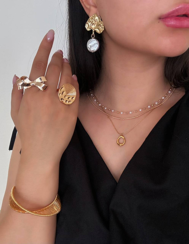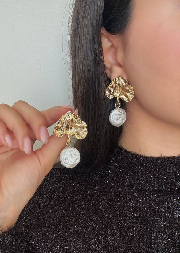 گوشواره زنانه چروک دفرمه تک مروارید مینیمال دخترانه
