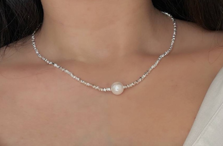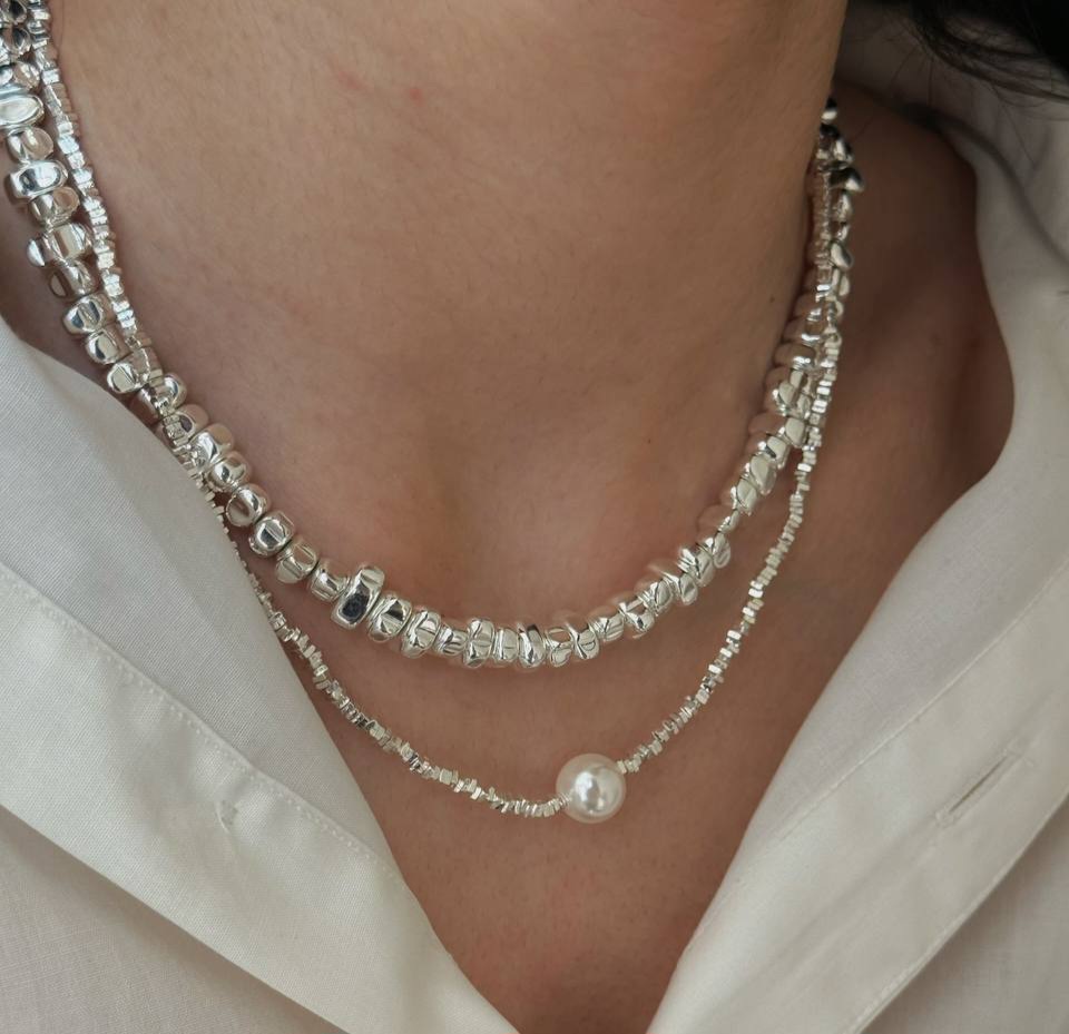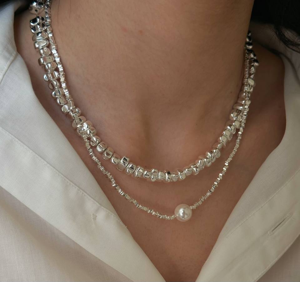 گردنبند زنانه تراش و مروارید مینیمال دخترانه آبکاری نقره درجه ۱ با رنگ ثابت و ضد حساسیت