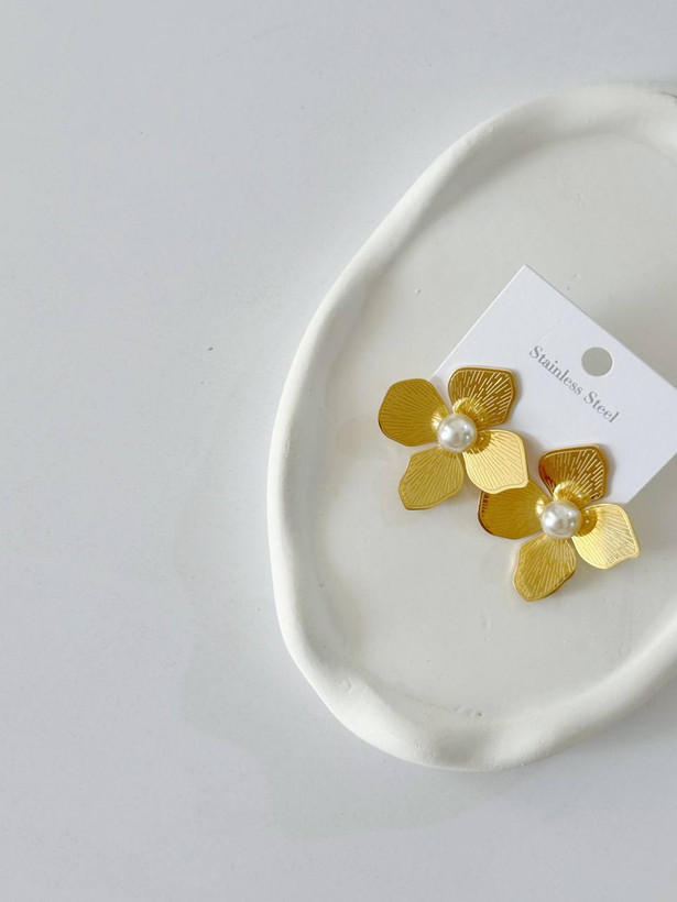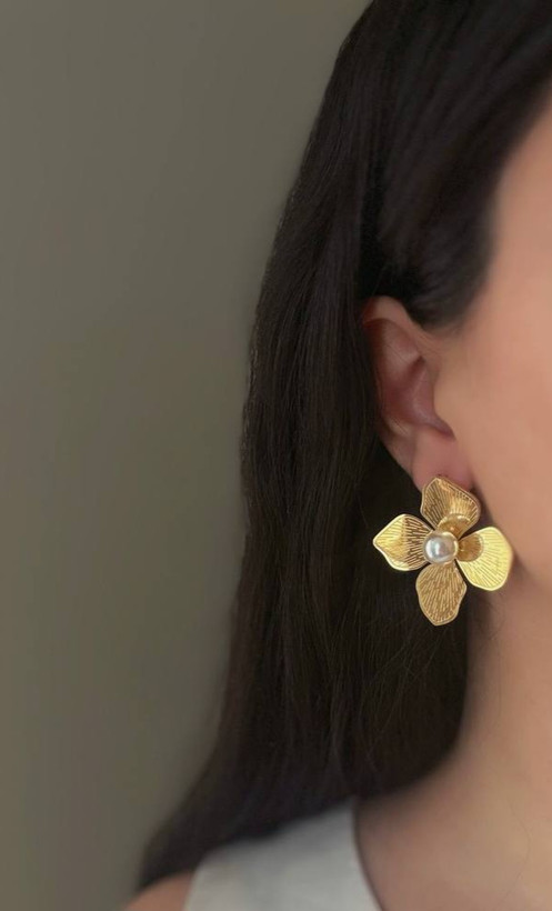 گوشواره زنانه گل مروارید دار مینیمال دخترانه