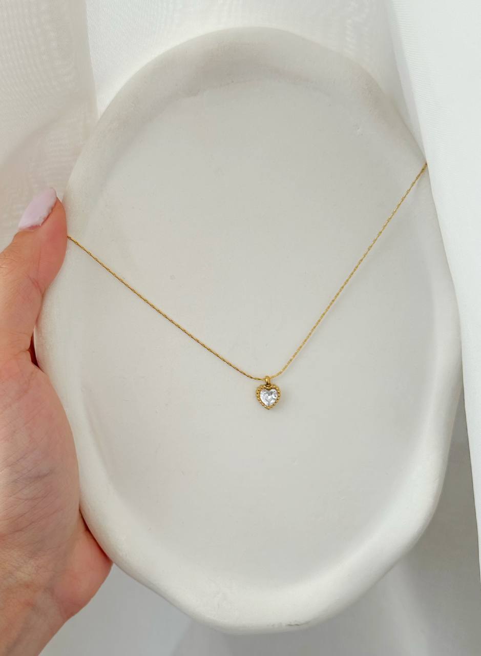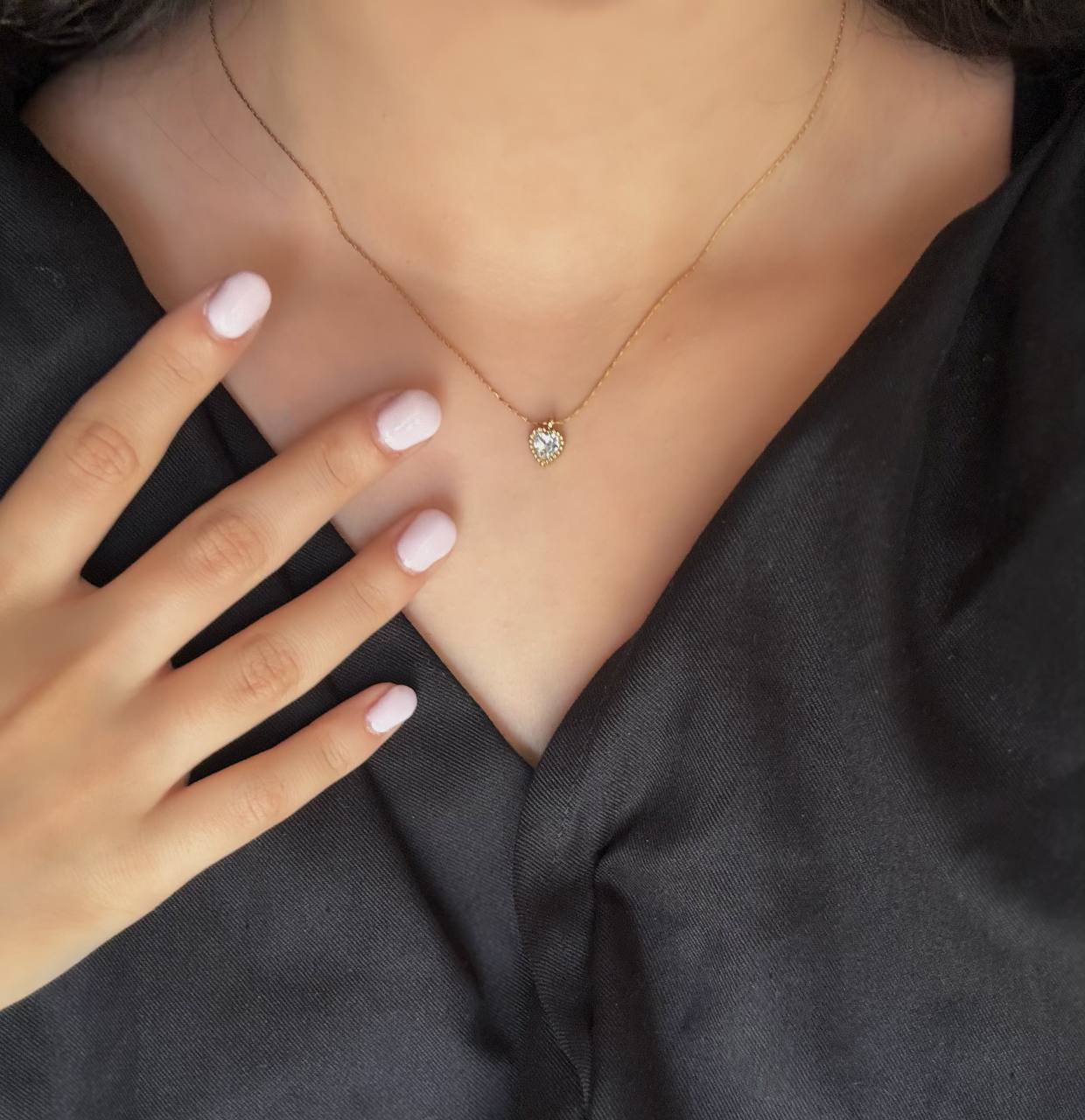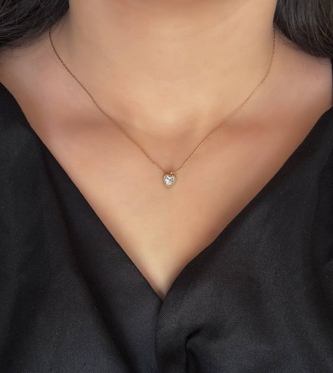 گردنبند زنانه قلب نگین دار استیل ، ضد حساسیت با رنگ ثابت