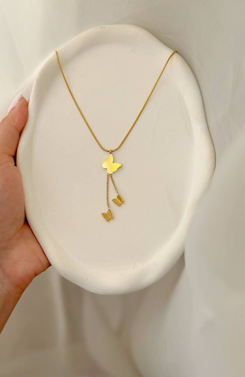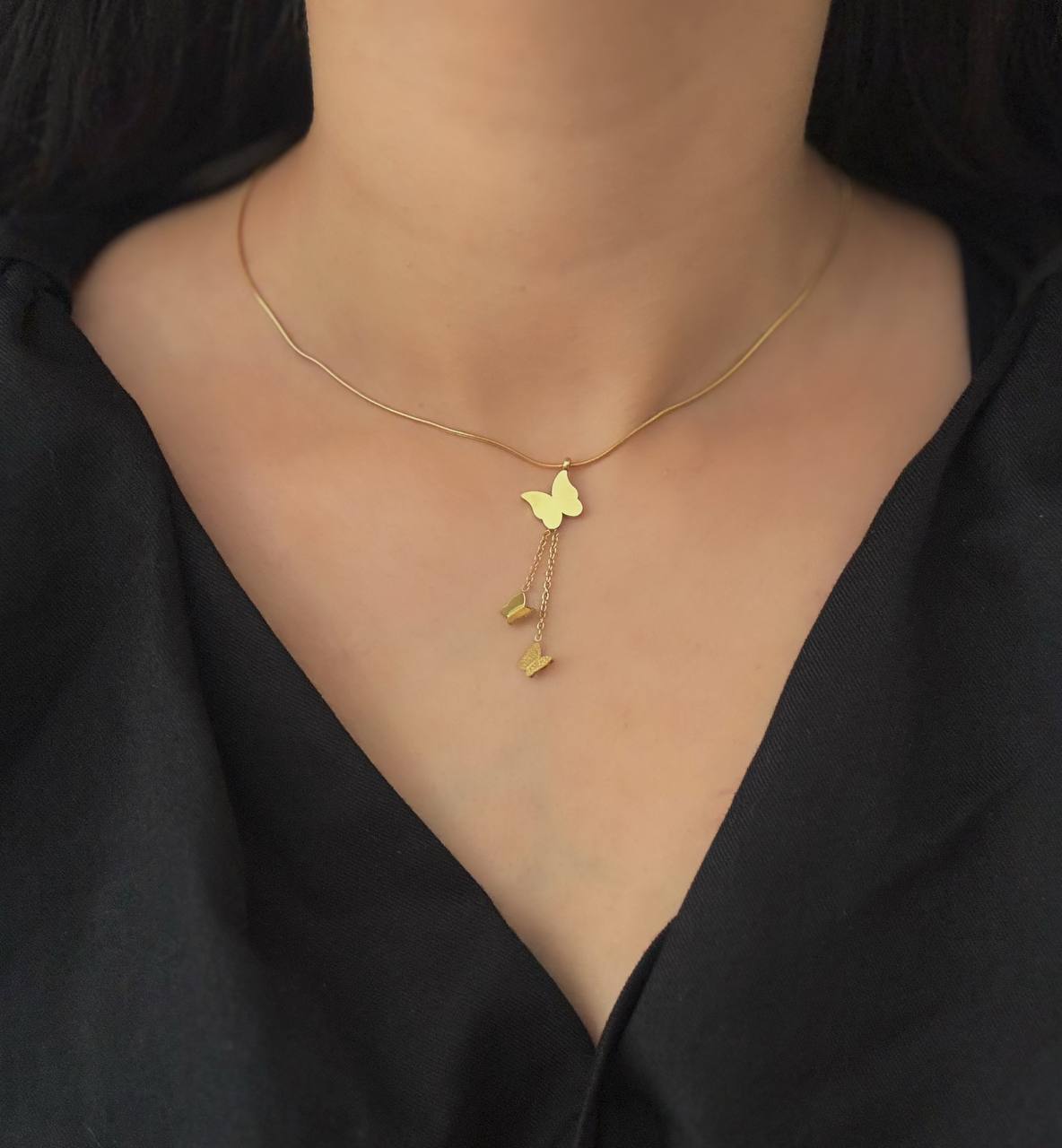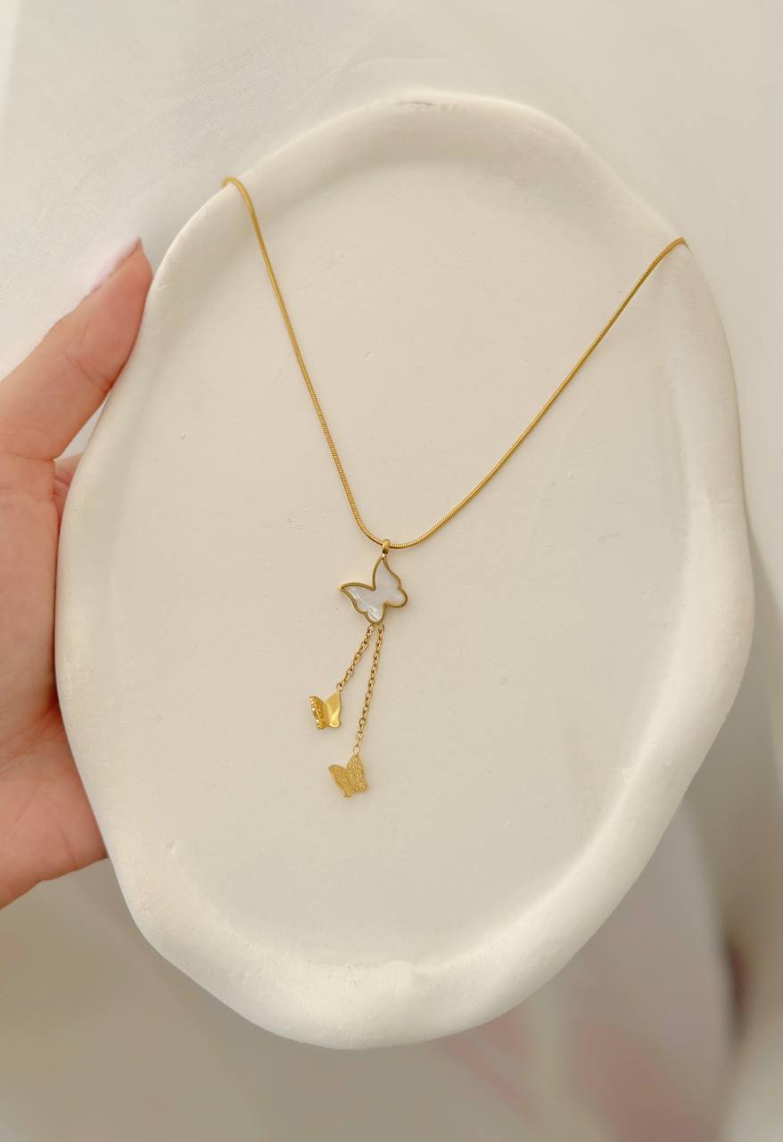 گردنبند زنانه پروانه صدفی آویزدار دورو ، استیل ضد حساسیت با رنگ ثابت