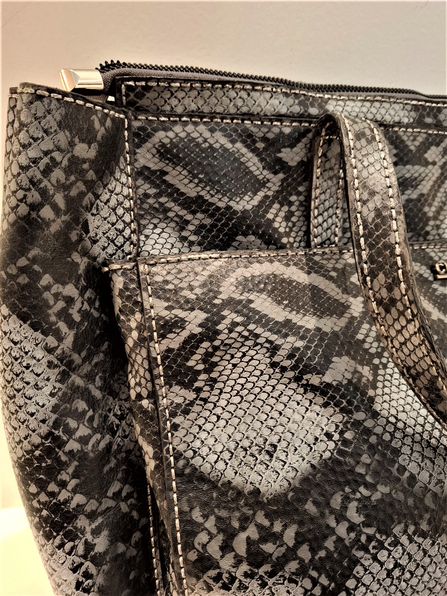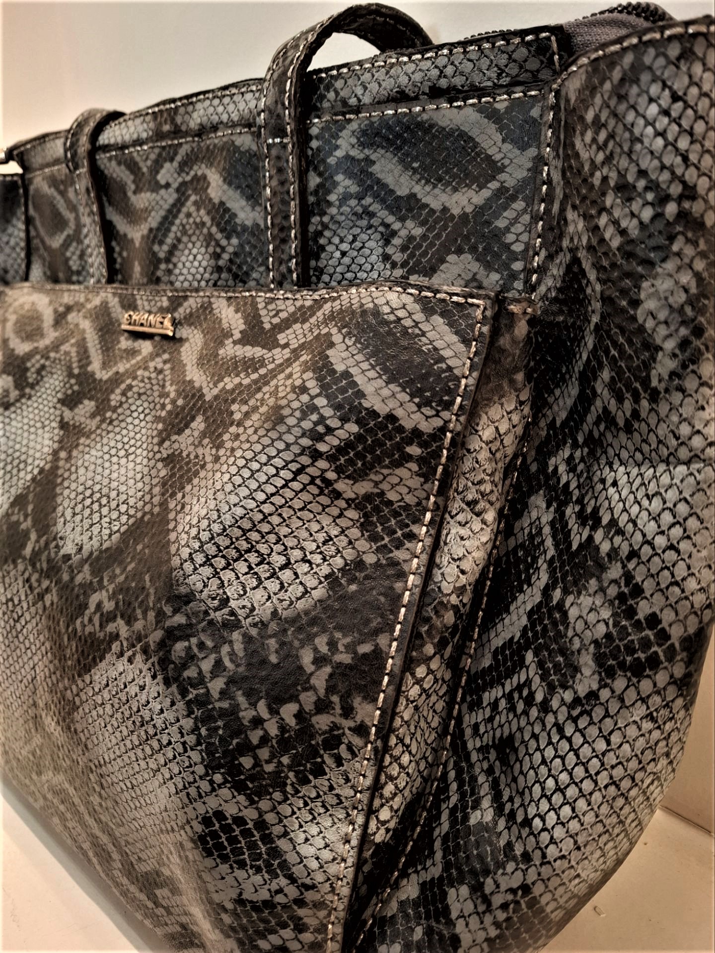 کیف زنانه چرم طبیعی پوست ماری دست دوز بزرگ مدل شنل، دوخت داخل با اشبالت طبیعی قابل سفارش در انواع رنگ ها و طرح های مختلف چرمی