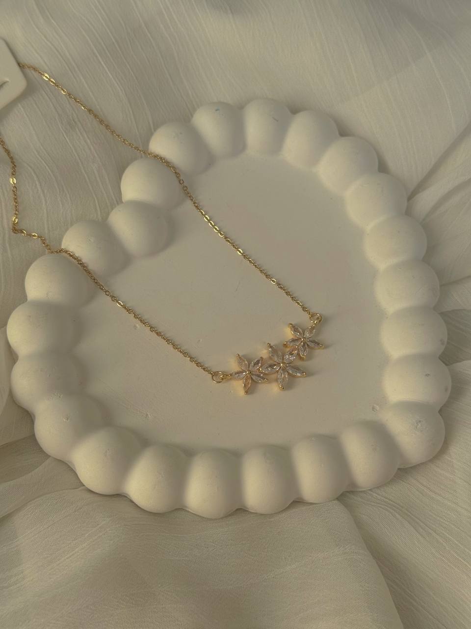گردنبند زنانه طرح سه گل مینیمال دخترانه رنگ طلایی از جنس استیل با رنگ ثابت و ضد حساسیت