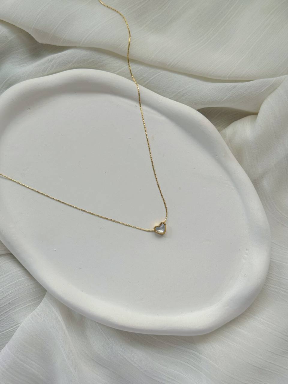 گردنبند زنانه قلب صدفی مینیمال دخترانه رنگ طلایی از جنس استیل با رنگ ثابت و ضد حساسیت
