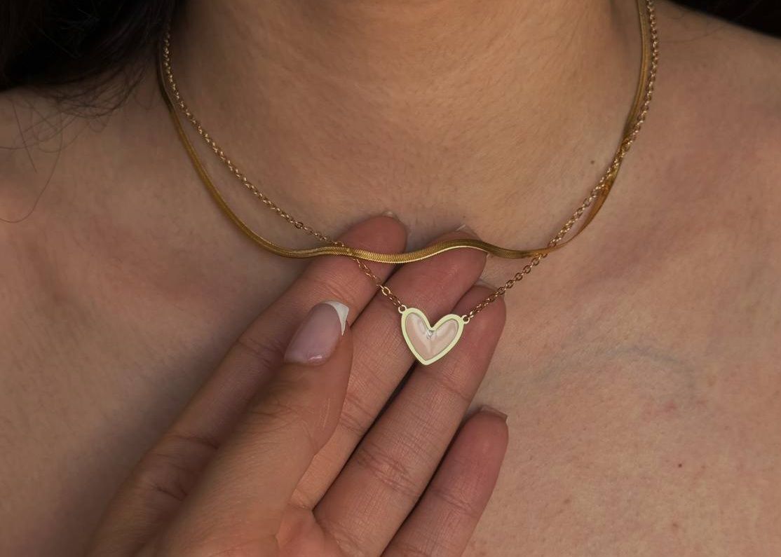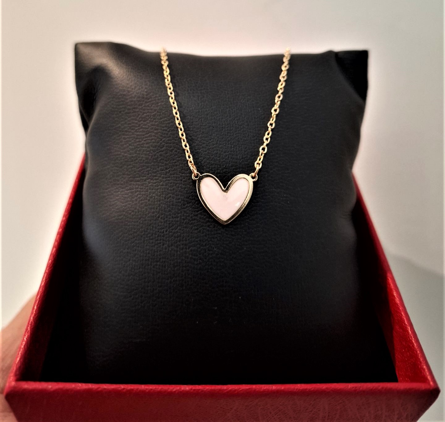 گردنبند زنانه قلب رنگی (صورتی) از جنس استیل با رنگ ثابت و ضد حساسیت
