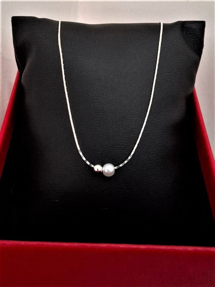 گردنبند زنانه 2 مروارید از جنس استیل با رنگ ثابت و ضد حساسیت