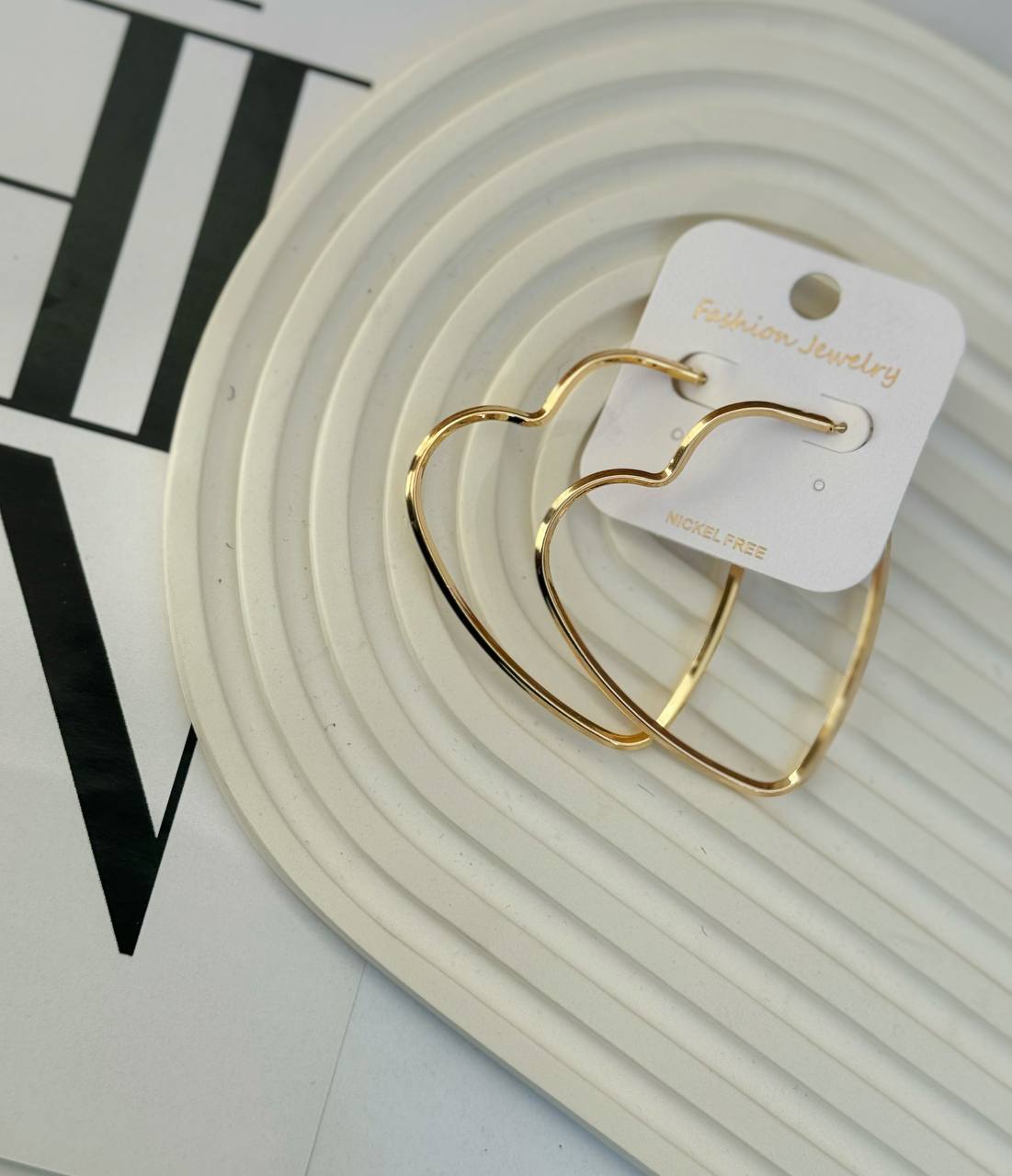 گوشواره زنانه قلب توخالی مینیمال دخترانه رنگ طلایی