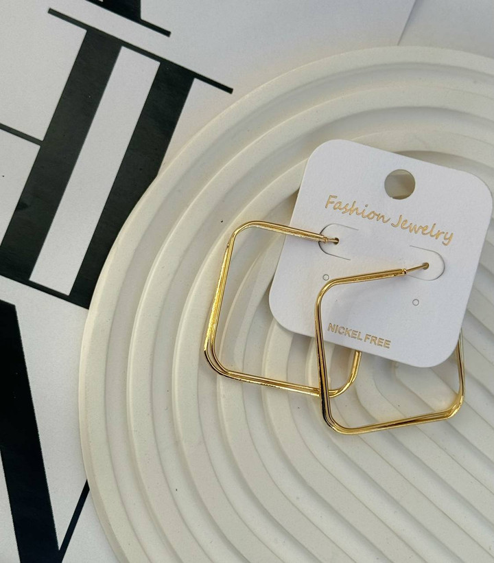 گوشواره زنانه مربع توخالی مینیمال دخترانه با رنگ ثابت و ضد حساسیت
