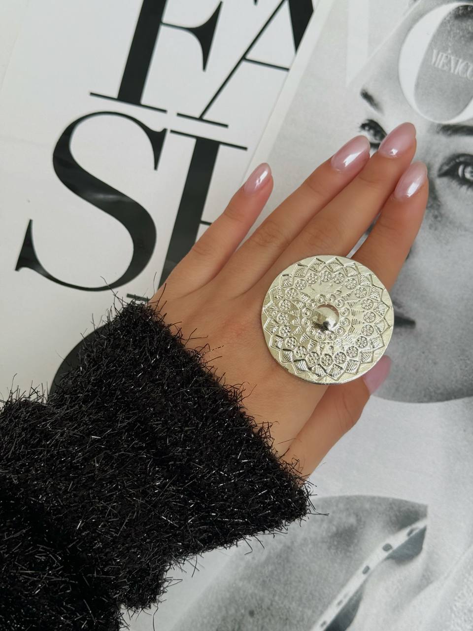 انگشتر ورشو زنانه گرد فشن مینیمال دخترانه رنگ نقره ای