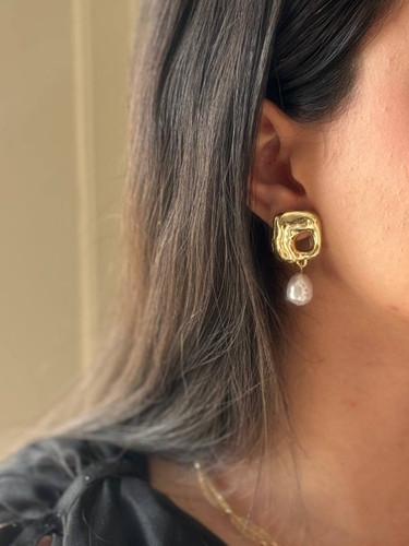 گوشواره زنانه مربع و مروارید دفرمه مینیمال دخترانه