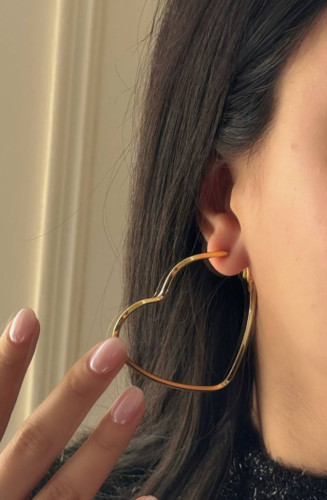 گوشواره زنانه قلب توخالی مینیمال دخترانه رنگ طلایی