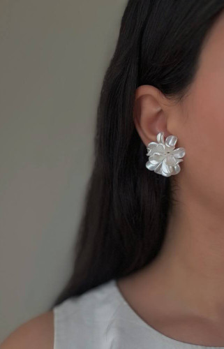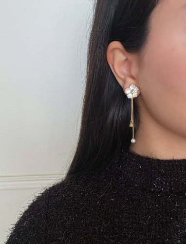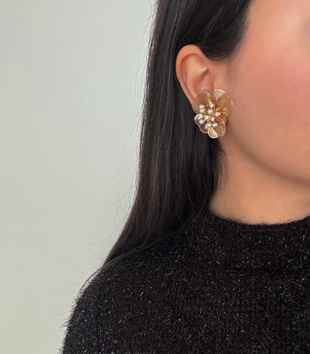 گوشواره زنانه گل حصیری مرواریدی طلایی مینیمال دخترانه