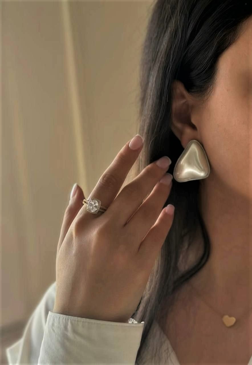گوشواره زنانه مربع و مروارید دفرمه مینیمال دخترانه