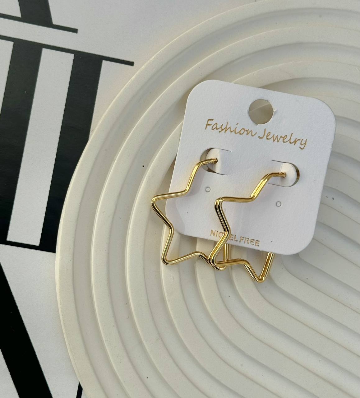گوشواره زنانه ستاره توخالی مینیمال دخترانه رنگ طلایی