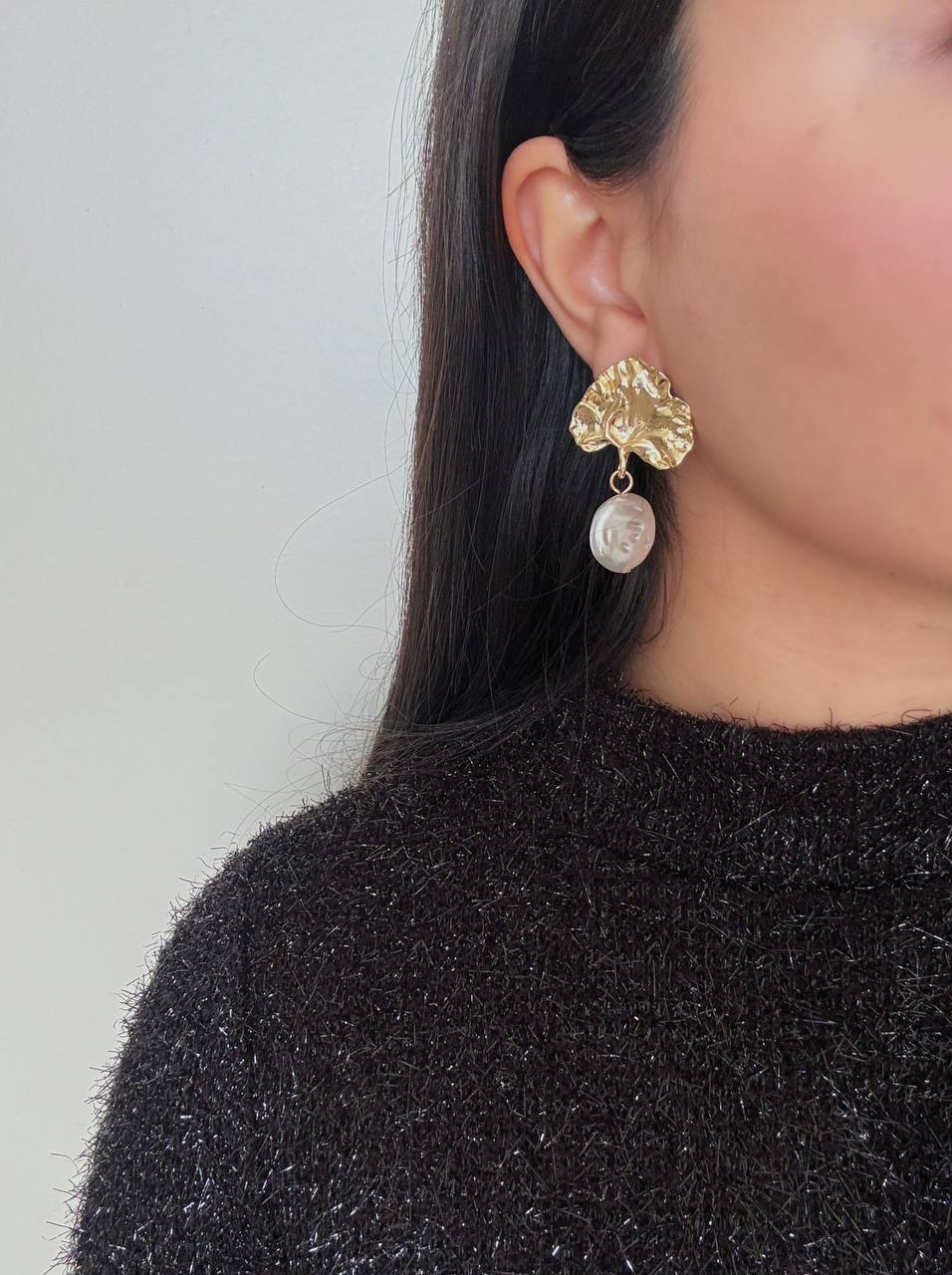 گوشواره زنانه چروک دفرمه تک مروارید مینیمال دخترانه