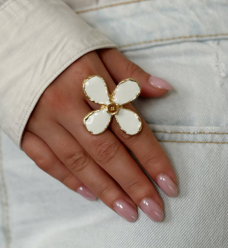 انگشتر زنانه گل کشیده مرواریدی مینیمال دخترانه رنگ طلایی