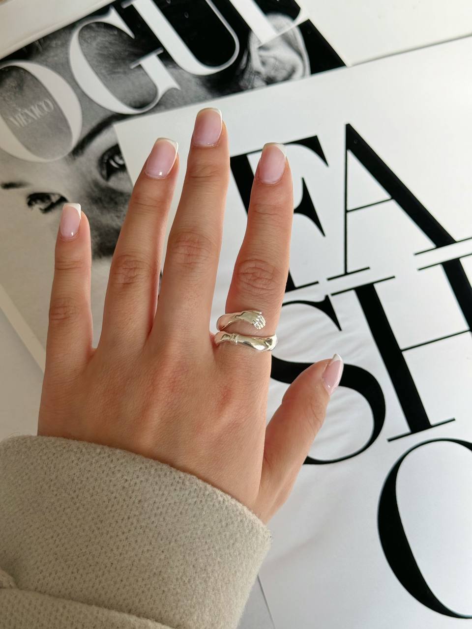 انگشتر زنانه تکست نقره ای مینیمال دخترانه فری سایز
