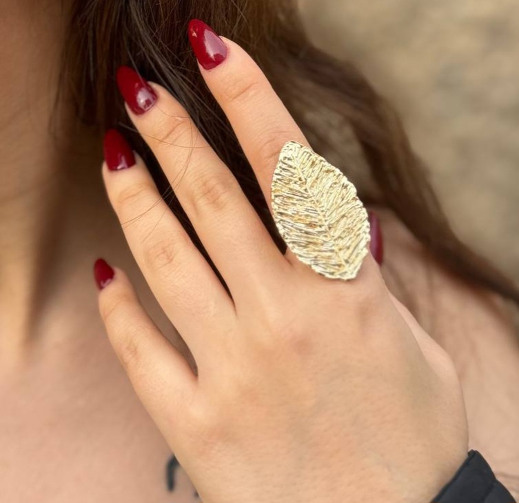 ناموجودانگشتر زنانه طرح برگ طلایی مات مینیمال دخترانه